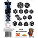 Approved for use with DCC. Contains Roman D3, Top Read D4, D5, D6, D7, D8, D10, D%10, D12, D14, D16, D20, D24 and D30.
