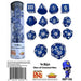 Approved for use with DCC. Contains Roman D3, Top Read D4, D5, D6, D7, D8, D10, D%10, D12, D14, D16, D20, D24 and D30.