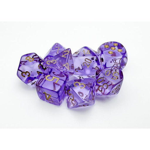 A set of glow-in-the-dark nebula dice Contents: • 1 d4• 1 d6• 1 d8• 2 d10• 1 d12• 1 d20 Due to the unique design of these dice, coloring and color ...