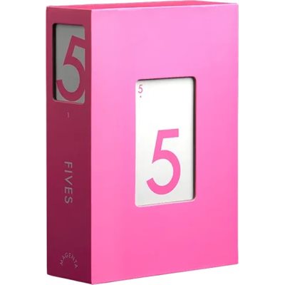 Fives is a trick-taking game for three or four players. The reverse side of the cards shows a magenta 5. The game is a must-follow game, with a fix...